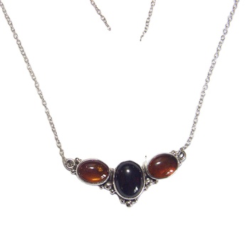 N193-Multi אבנים שרשרת שרשרת עם ענבר ושחור אוניקס